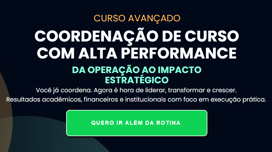 Você já coordena. Agora é hora de liderar, transformar e crescer. Resultados acadêmicos, financeiros e institucionais com foco em execução prática.